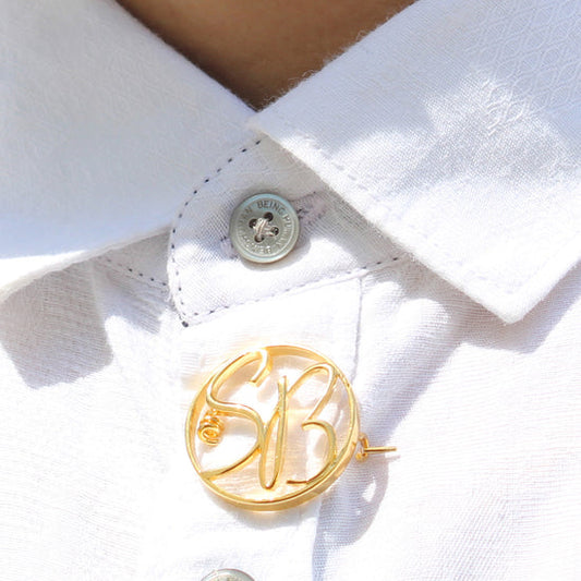MOSKAI Personalized Round Initial Brooch Pin | Custom Designer Brooch for Men & Women