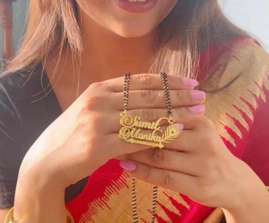 Personalized Couple Name Heart Mangalsutra – Custom Gold Plated Pendant