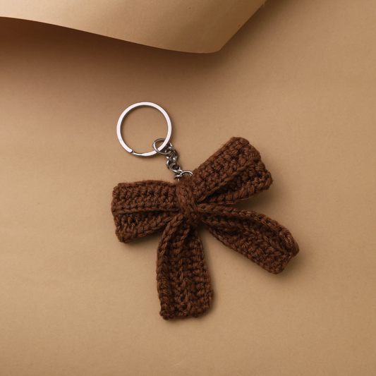 Moskai Crochet Brown Bow Ribbon Keychain | Cute Gift for Her