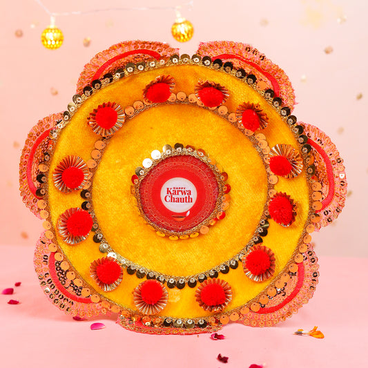 Karwa Chauth Thali Set | Yellow and Mirror Finish