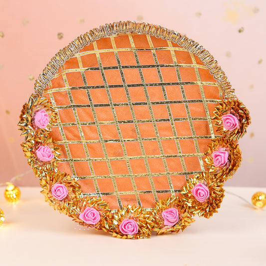 Orange Chequered Karwa Chauth Thali Set | Steel Thali