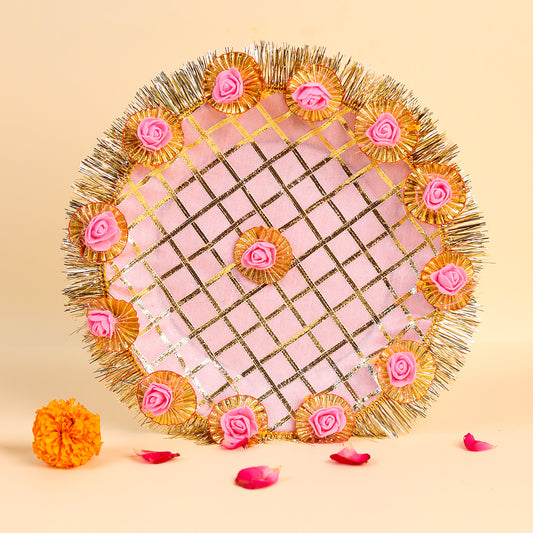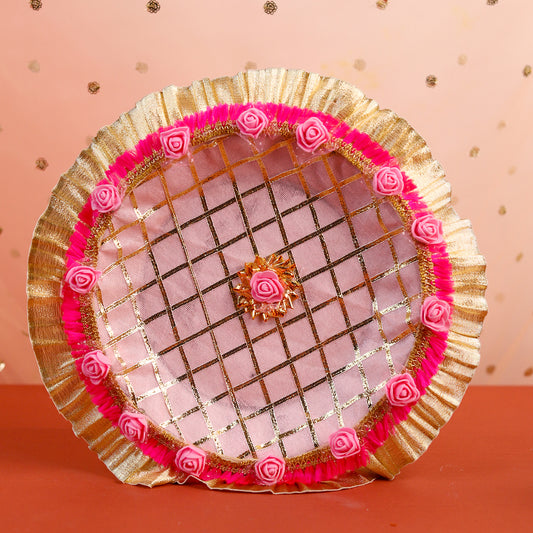 Karwa Chauth Thali Set | Pink and Multi Colour Pooja Thali