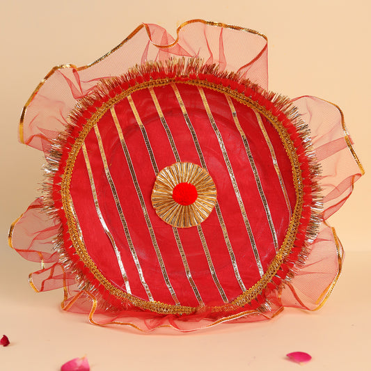 Karwa Chauth Thali Set with Cover | Red Mirror Finish Steel Thali