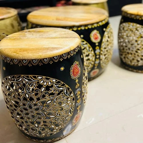 Mosaki Round Black Hand-Painted Nesting Coffee Table Set of 5
