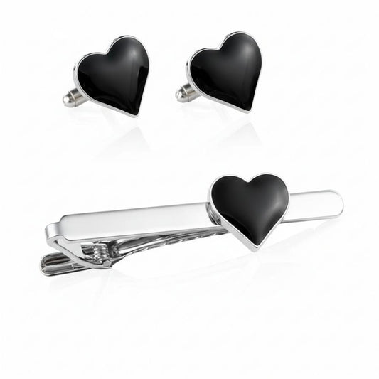 Moskai Heart Cufflink & Tie Clip Combo | Red & Black Heart Set | Valentine Love Collection Gift for Him