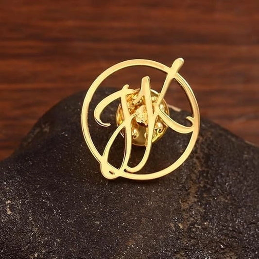 Custom Round Brooch Pin for Men & Women – Personalised Initial Lapel Pin – Gold Letter Badge for Blazer, Coat, Kurta – Wedding Groom Bride Family Gift
