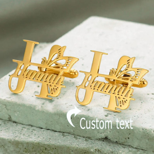 Gold finish Cufflink for Her Custom Name Jewelry by Moskai