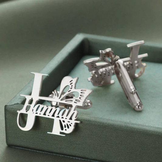 Personalised Butterfly Silver Cufflink for Her – Custom Name Jewelry by Moskai