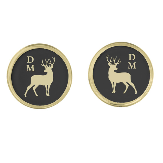 Moskai Monogram Gold Silhouette Deer Cufflinks | Customizable Luxury Enamel Cufflinks