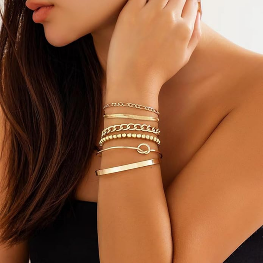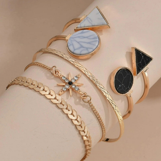Gold Plated Geometric Bracelet | Stackable Korean Style | Pack of 5 Adjustable