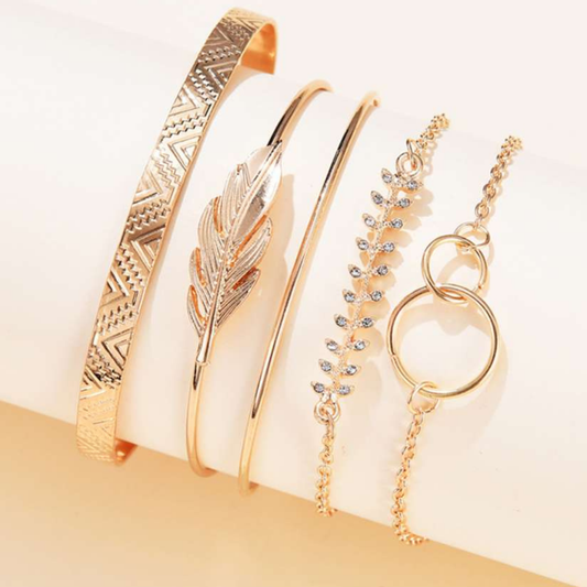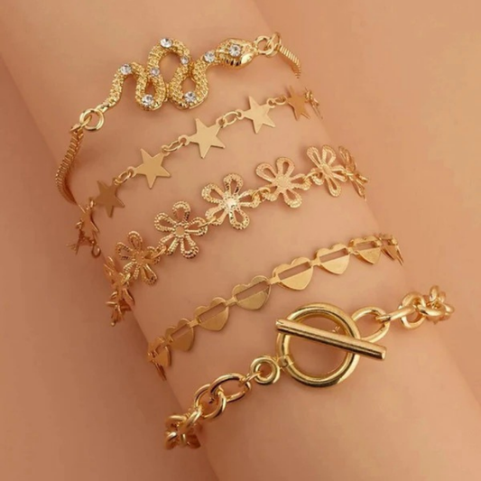 Gold Plated Charm Bracelet Set | Adjustable Modern Design |