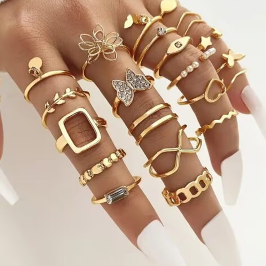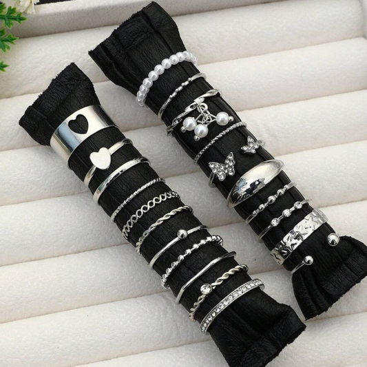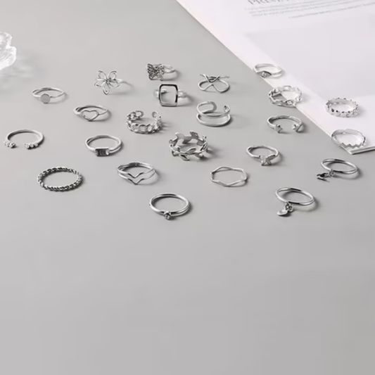 MOSKAI Silver Plated Stackable Rings Set of 23 | Elegant Fashion Jewelry