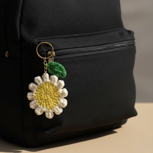 Moskai Crochet Daisy Flower Keychain | Cute Floral Bag Charm | Gift for Her