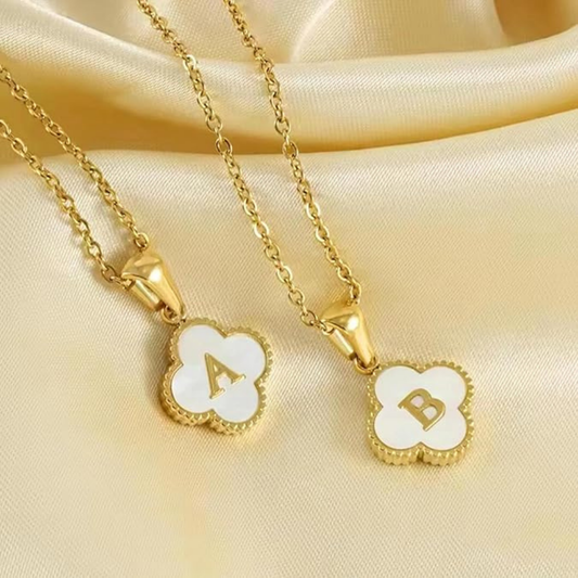 Moskai Lucky Clover Leaf Personalized Initial Enamel Pendant