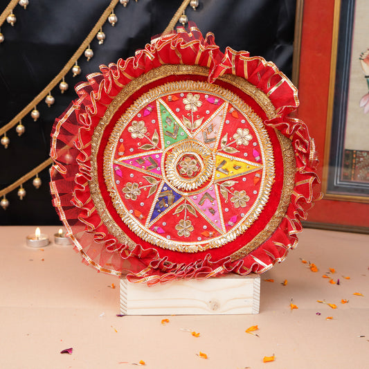 My Shining Star Pooja Thali Set | Red Patch Colour Star Karwa Chauth Thali