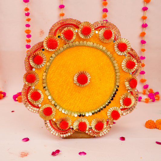 MOSKAI Yellow Thali Set | Decorative Pooja Thali | Festival Aarti Plate