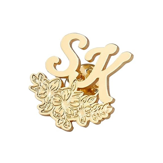 MOSKAI Initials Name Brooch Pin with Floral Design