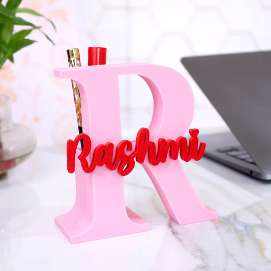 Moskai 3D Baby Pink Personalized Name Pen Stand for Desk Decor