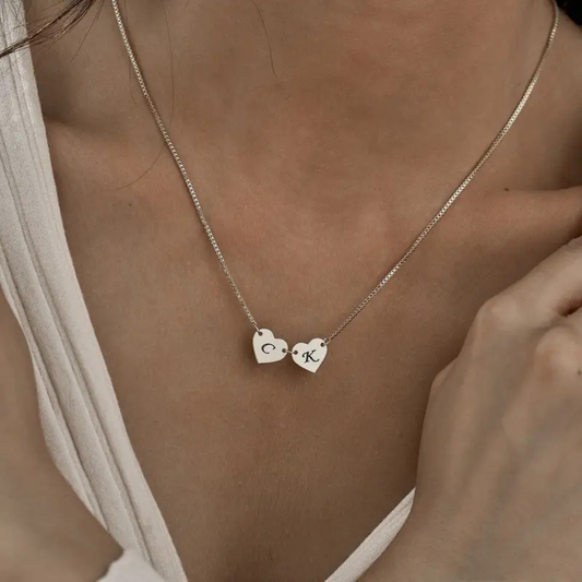 Personalised 2 Hearts with Initials Pendant | Valentine Love Collection