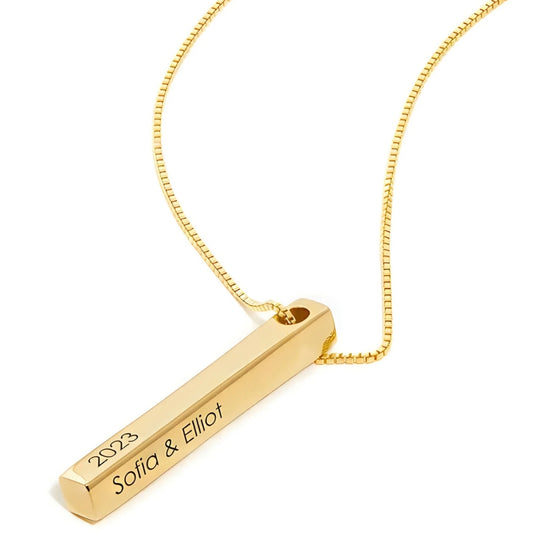 22K Gold Plated Engraved Cuboid Memory Bar Necklace