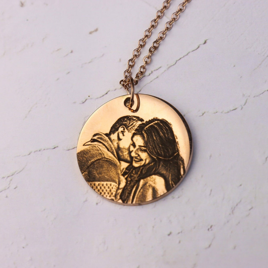 Moskai Personalised Round Photo Engraving Pendant | Custom Picture Necklace