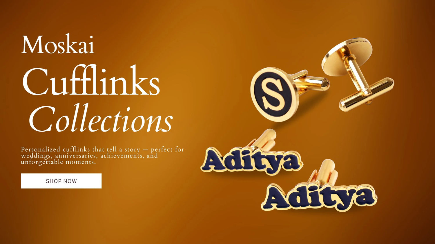 Moskai Personalised Name Cufflinks in Gold Finish | Mens Cufflinks Personalised