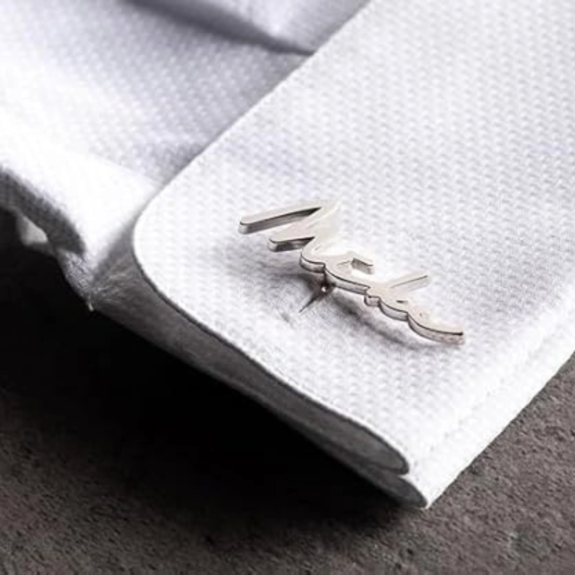 • Custom Full Name Design – Personalize your cufflinks with your name in elegant script style for a unique identity
