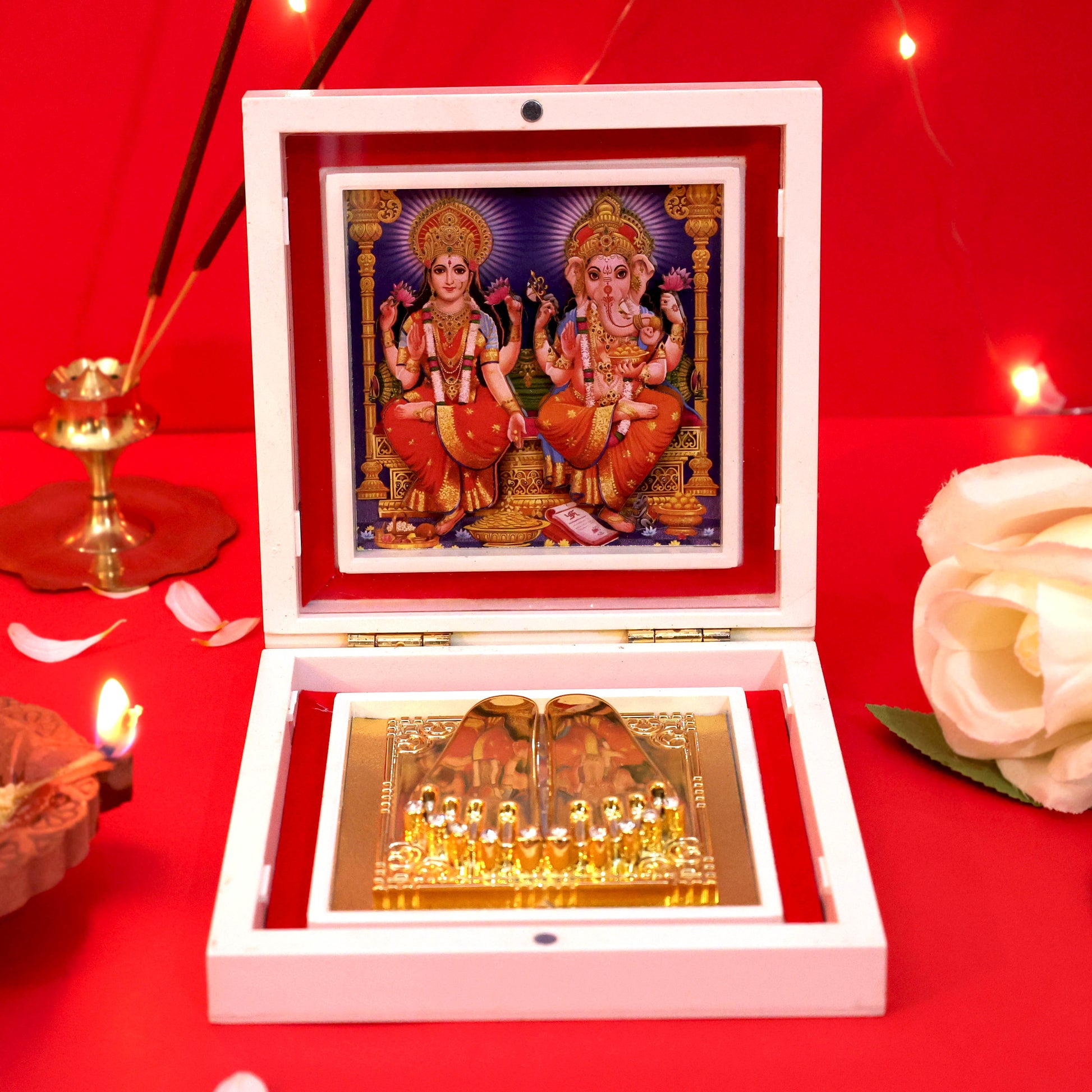 Moskai 3D Laxmi Ganesha Charan Paduka Box for Pooja Room