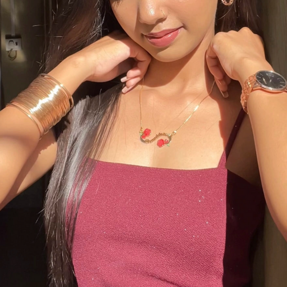 Celebrate love with the Personalized Enamel Name Pendant from Moskai’s Valentine Rose Collection. This elegant pendant features a sleek design with custom name engraving in high-quality enamel, offering a unique and personal touch. Available in Rose Gold and Gold finishes, it comes with an anti-tarnish coating for long-lasting shine. Perfect for Valentine’s Day, anniversaries, or gifting, this pendant combines modern elegance with heartfelt personalization, making it a memorable keepsake for your loved one.