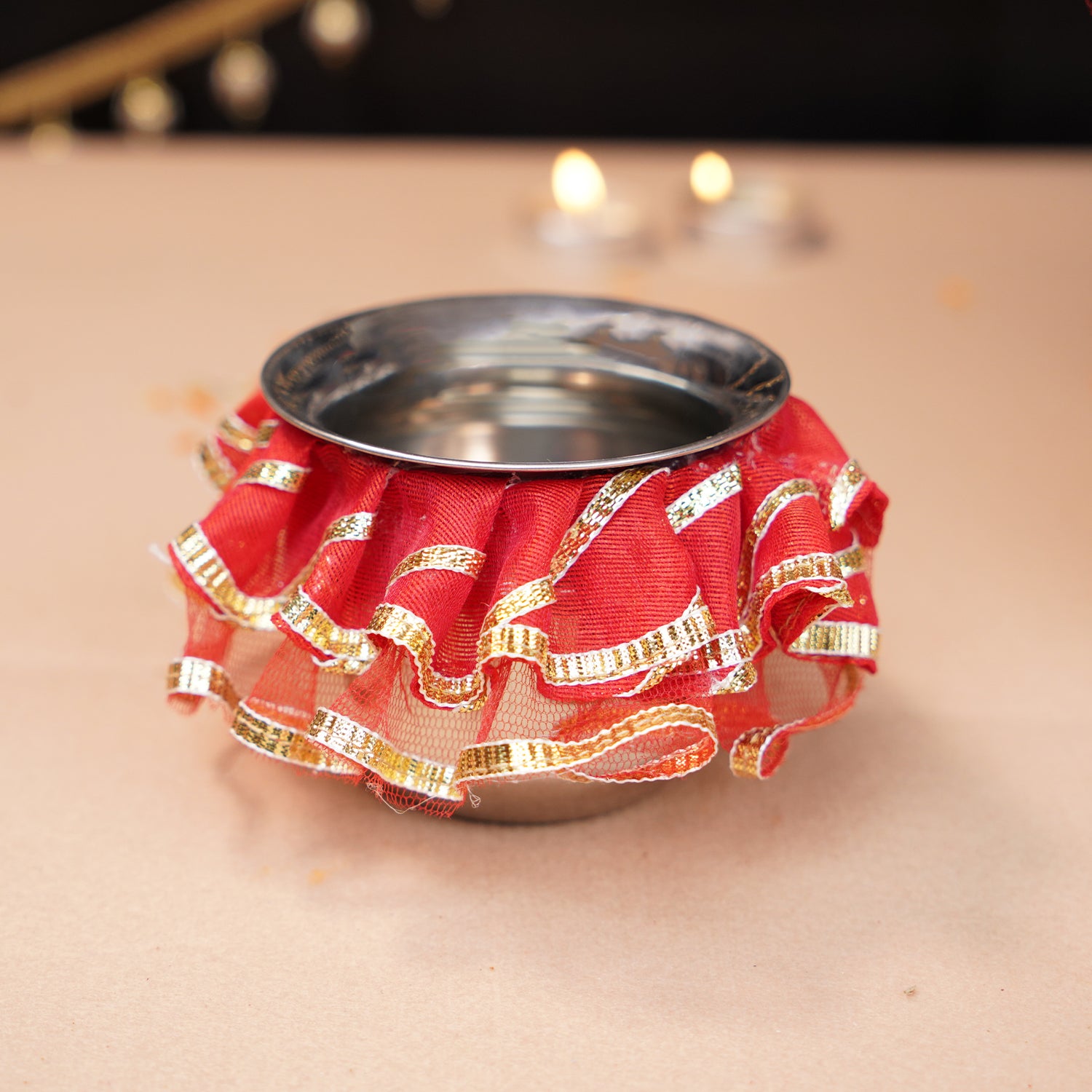 Complete Karwa Chauth Set – Includes red patch colour star thali steel channi and steel kalash for rituals