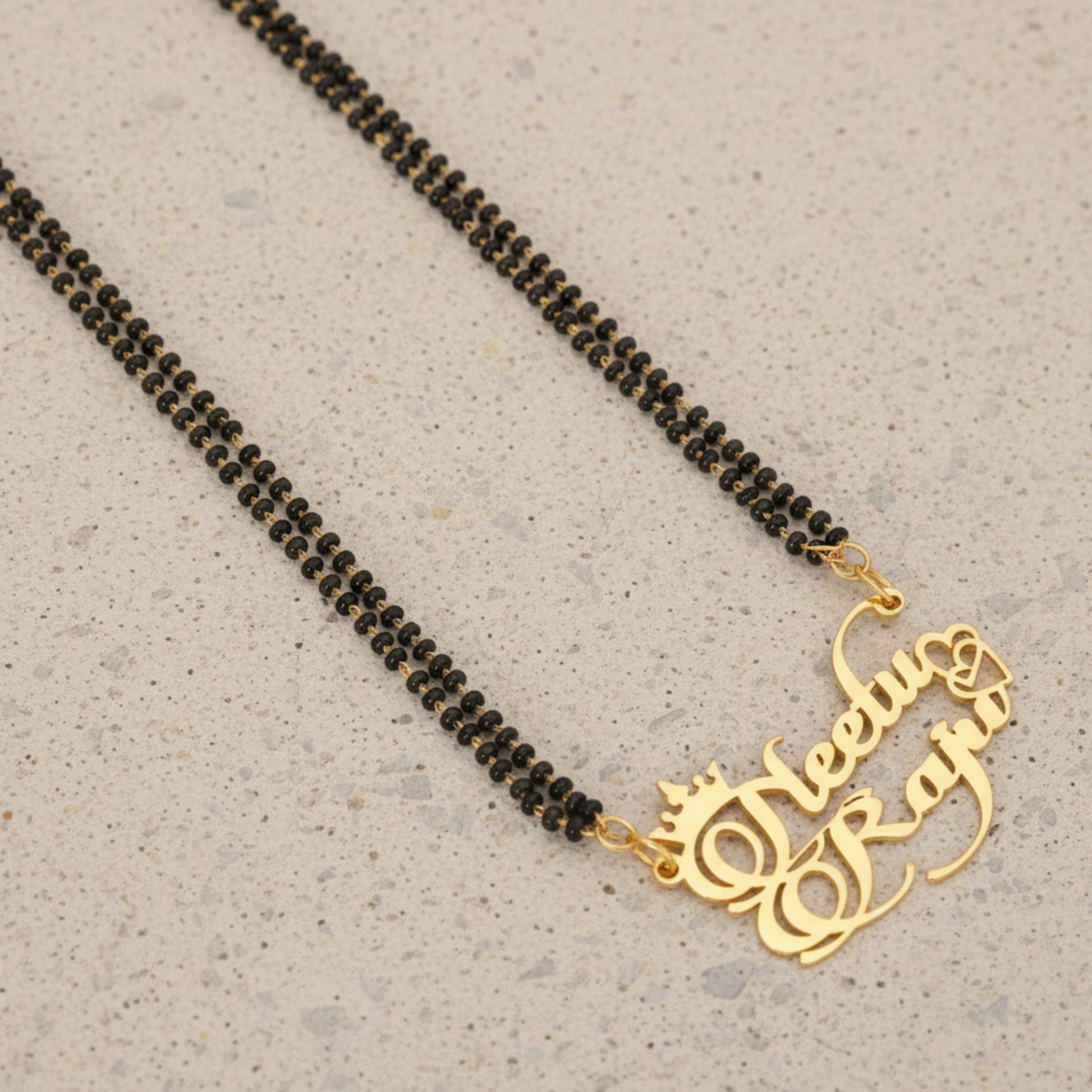 Personalized Crown & Heart Couple Name Mangalsutra – Gold Plated Double Name Pendant