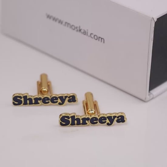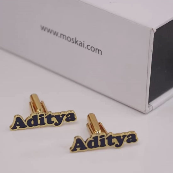 MOSKAI Personalized Gold & Black Cufflinks for Modern Professionals | Custom Name Cufflinks