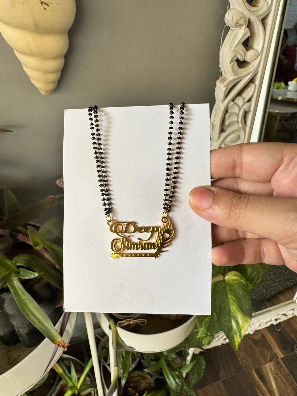 Personalized Peacock & Flute Couple Name Mangalsutra – Gold Plated Traditional Jewelry